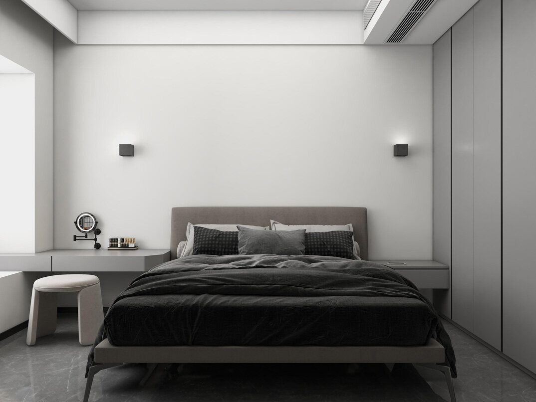 下崖社區(qū)112㎡三室兩廳主臥極簡(jiǎn)風(fēng)格裝修案例效果圖