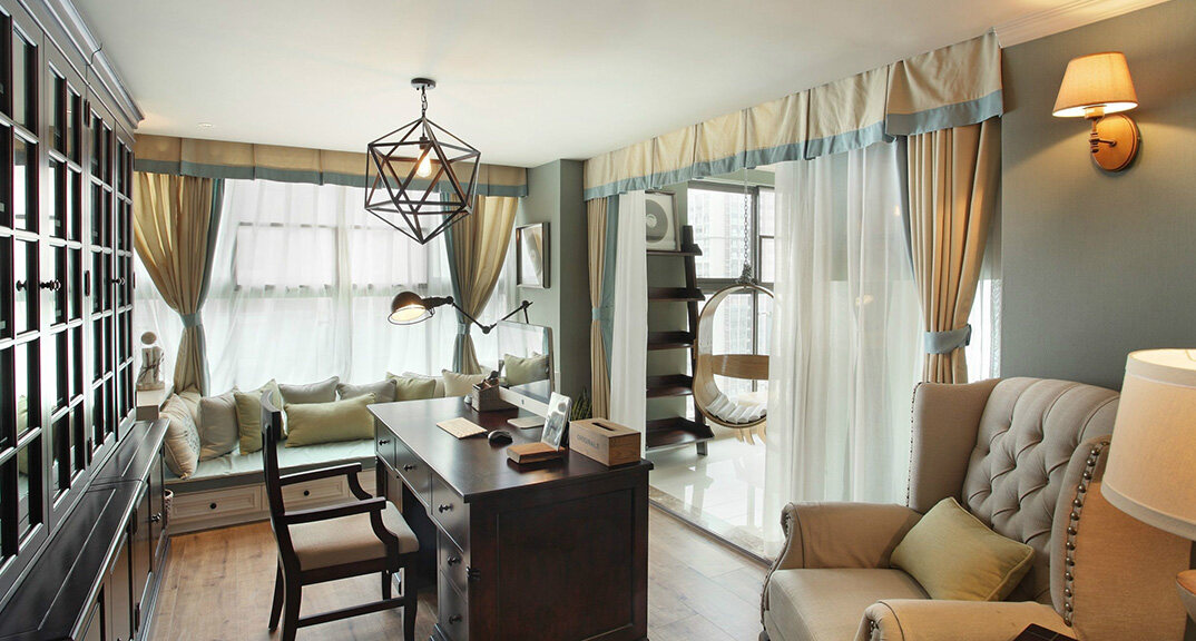 檀府300㎡別墅書房現(xiàn)代美式風(fēng)格裝修案例效果圖