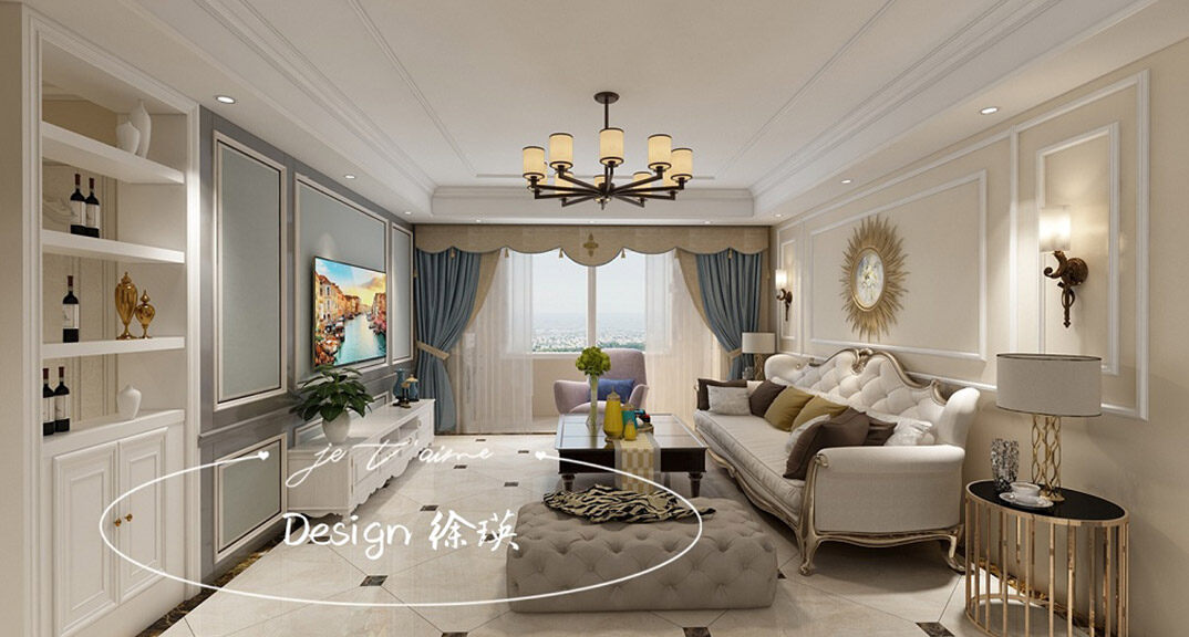 午山96㎡兩室兩廳客廳簡歐風格裝修案例效果圖