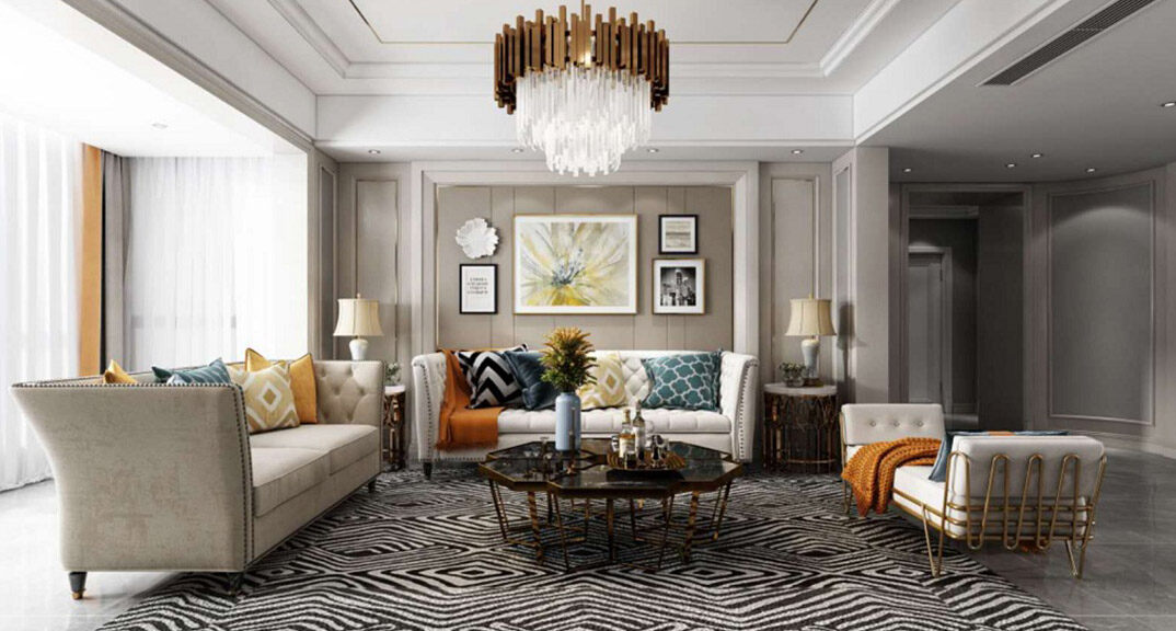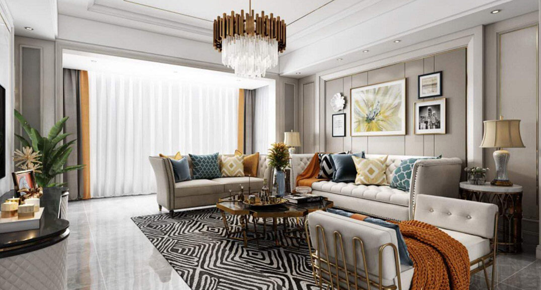 曉港名城140㎡三室兩廳客廳沙發(fā)現(xiàn)代簡(jiǎn)約風(fēng)格裝修案例效果圖