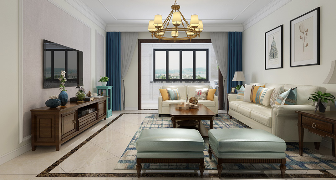 桂花園122㎡三室兩廳客廳美式風(fēng)格裝修案例效果圖