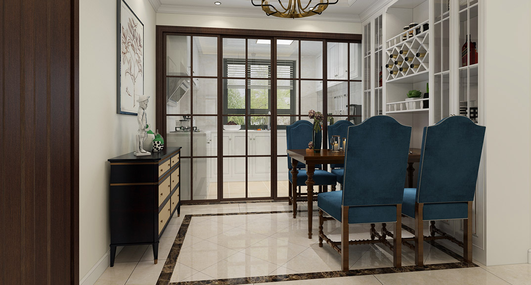 桂花園122㎡三室兩廳餐廳美式風(fēng)格裝修案例效果圖