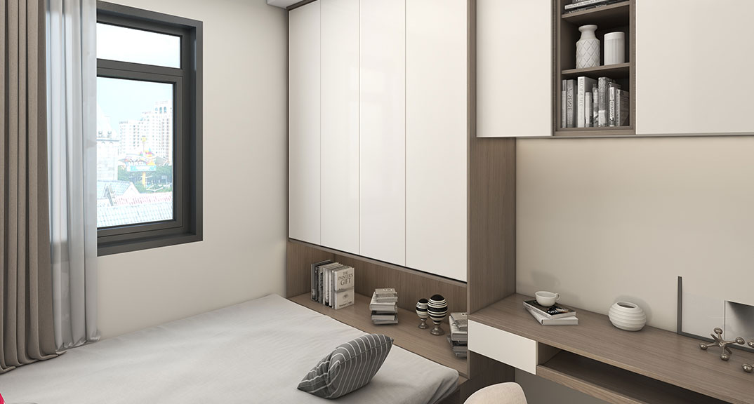 越秀星匯城97㎡三室兩廳臥室輕奢風(fēng)格裝修案例效果圖