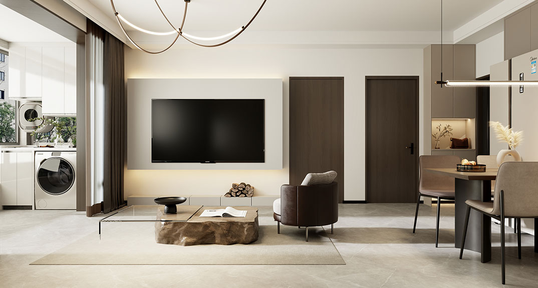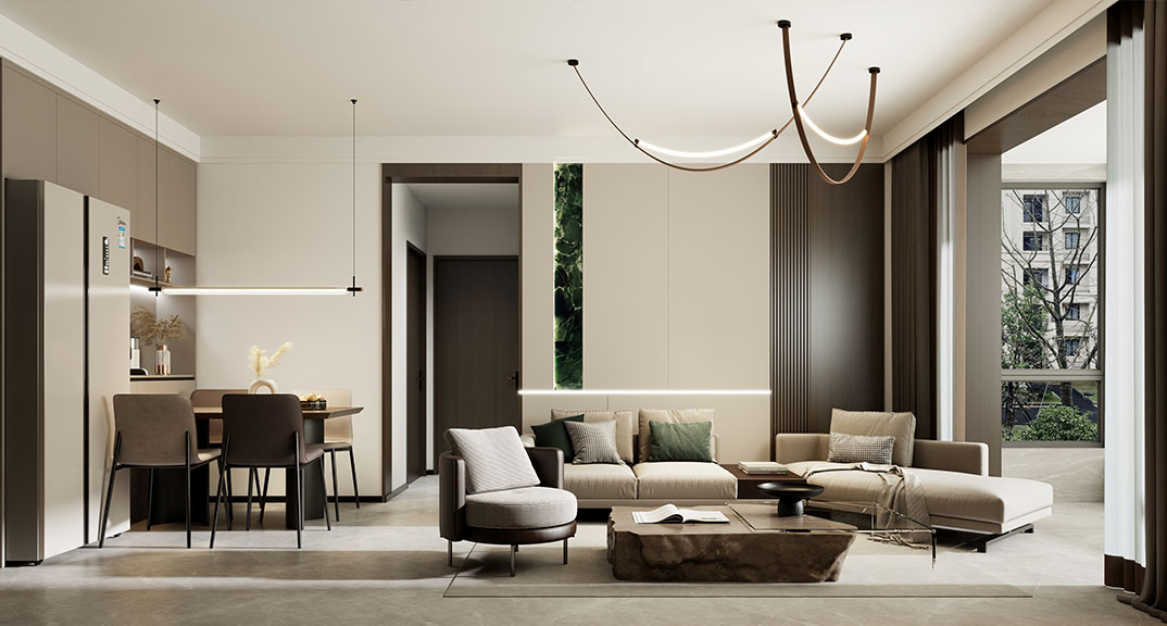 悅動(dòng)灣109㎡三室兩廳客餐廳現(xiàn)代簡(jiǎn)約風(fēng)格裝修案例效果圖