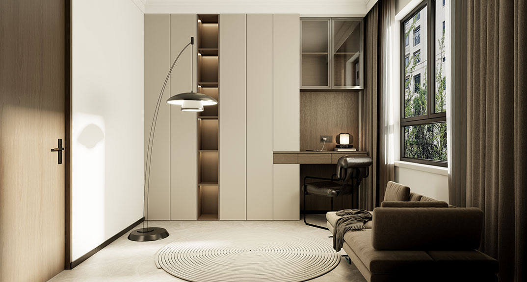 悅動(dòng)灣109㎡三室兩廳書房現(xiàn)代簡(jiǎn)約風(fēng)格裝修案例效果圖