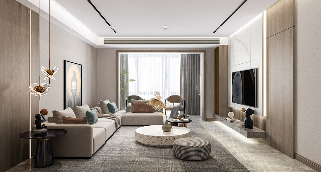 安瀾嘉園120㎡三室兩廳現(xiàn)代輕奢風格裝修vr全景案例