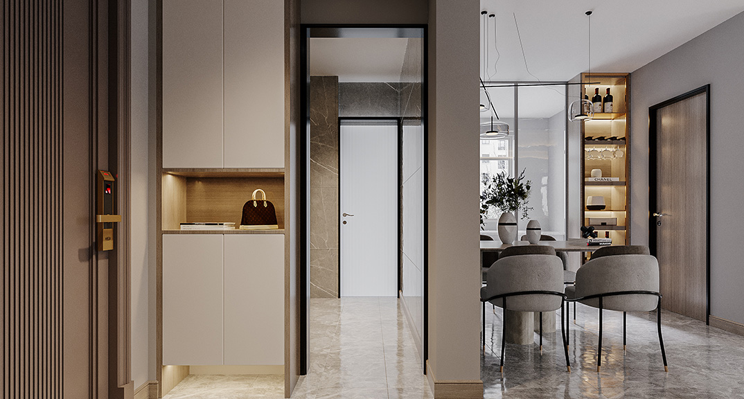 城市花園120㎡兩室兩廳玄關輕奢風格裝修案例效果圖