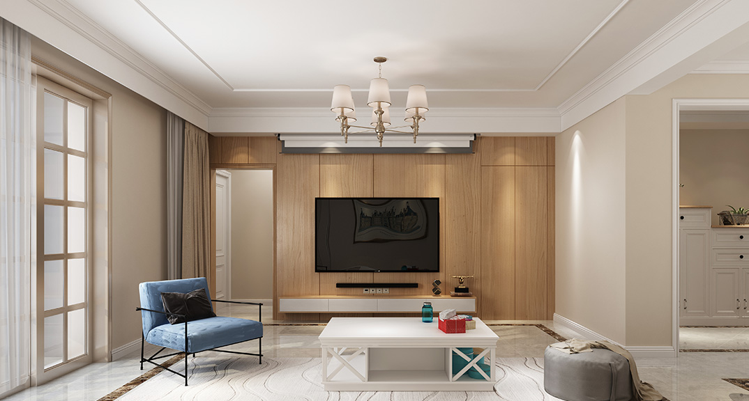 壹號(hào)學(xué)府135㎡三室兩廳客廳電視美式風(fēng)格裝修案例效果圖