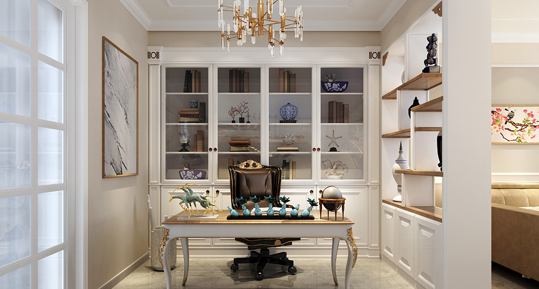 壹號(hào)學(xué)府135㎡三室兩廳書(shū)房美式風(fēng)格裝修案例效果圖