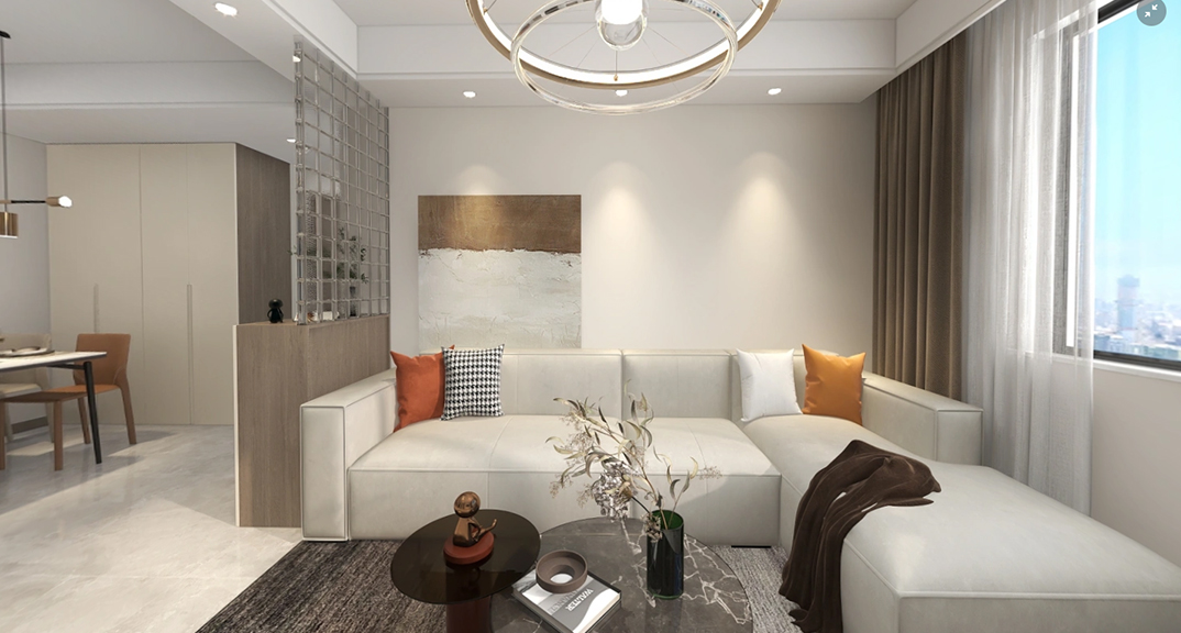 保利時代88㎡兩室兩廳客廳現(xiàn)代簡約風格戶型研發(fā)案例