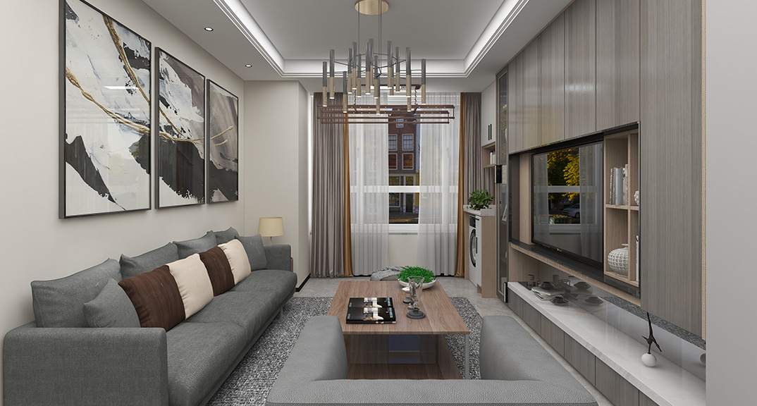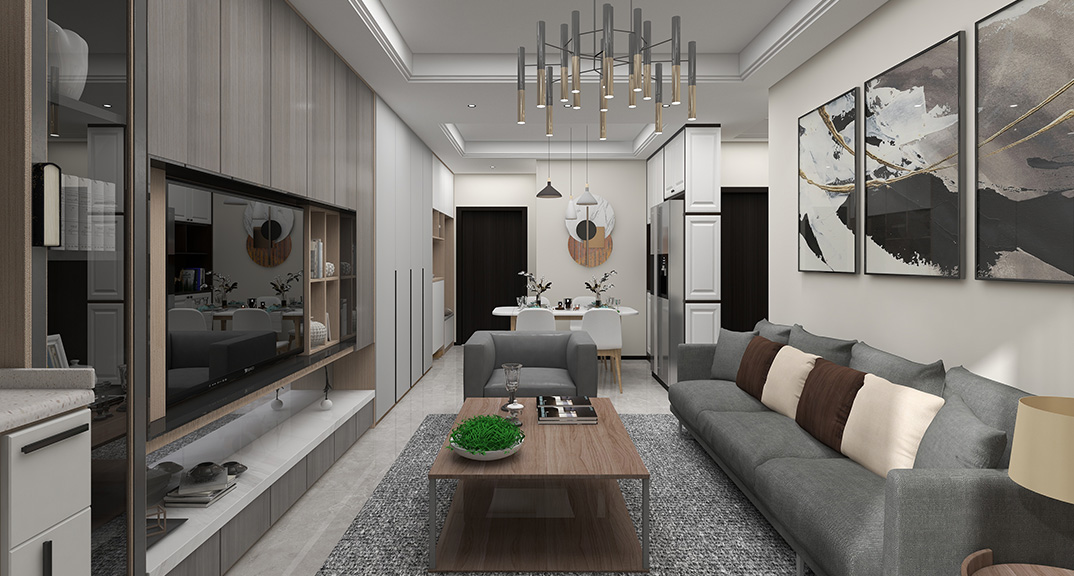 保利時(shí)代78㎡兩室兩廳客廳現(xiàn)代簡(jiǎn)約風(fēng)格戶型研發(fā)效果圖