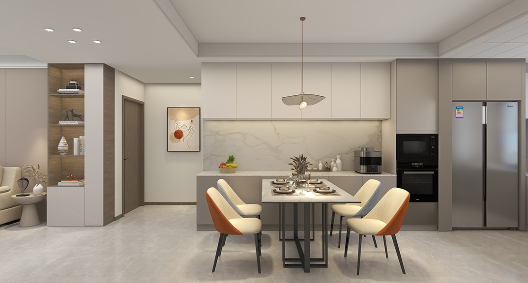 自然的氣韻自由穿梭,釋放美感與層次。經(jīng)典與現(xiàn)代的碰撞,體現(xiàn)了空間包容與開(kāi)放的美學(xué)態(tài)度。多重材質(zhì)拼接打破逼仄與沉悶,營(yíng)造出通透敞亮的整體氛圍。此外,設(shè)計(jì)師在用色、選材上大花心思,精致細(xì)膩的陳設(shè)、冷暖相融的材質(zhì)、明暗有序的組合,以期呈現(xiàn)集品質(zhì)、藝術(shù)、舒適為一體的生活方式。