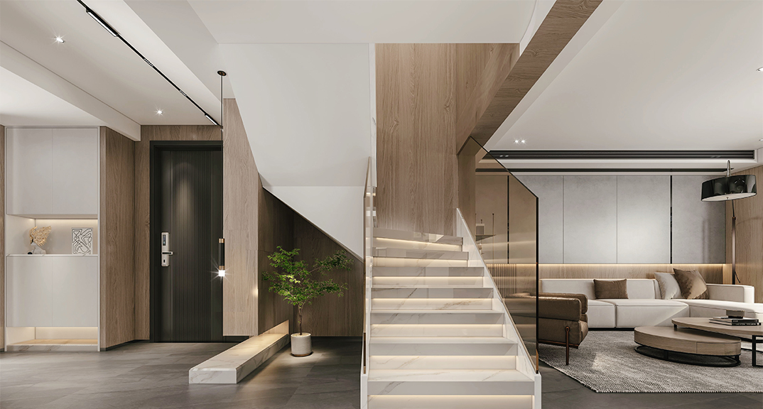 業(yè)主想要自己家富有質(zhì)感與創(chuàng)新,特殊材料,線性燈的運用較多,整體空間以木色與深灰色為基調(diào),搭配具有藝術(shù)氣息的工藝品,天然肌理的家具,來營造出寧靜優(yōu)雅的居住環(huán)境。