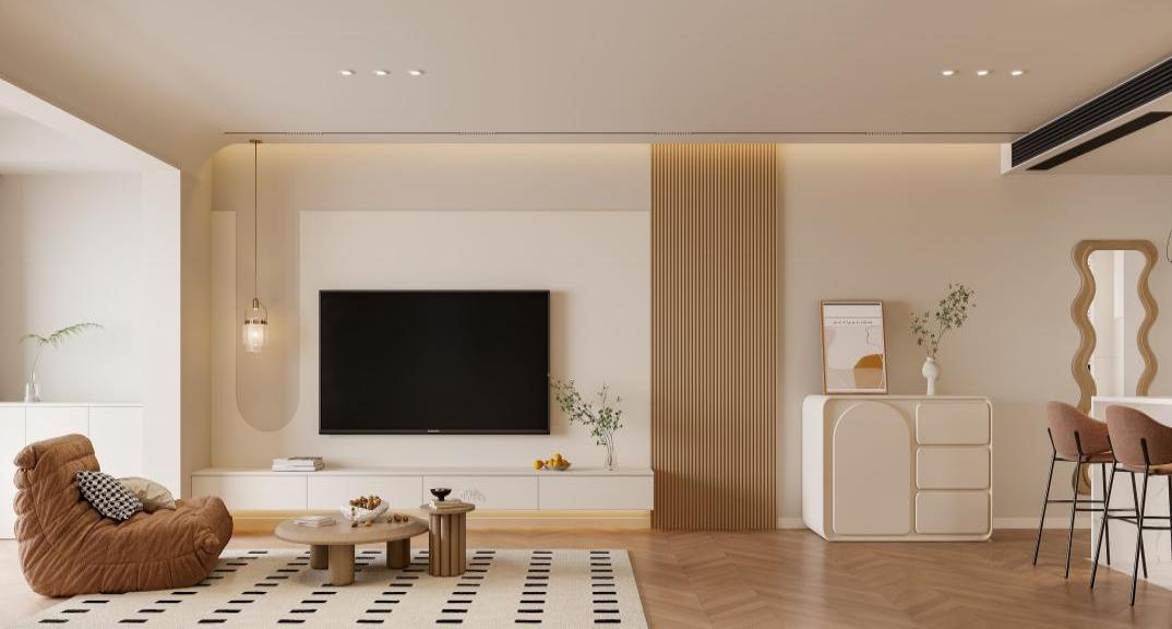 再說客廳位置,原戶型沙發(fā)墻尺寸很小,為了延長沙發(fā)墻,所以在設(shè)計(jì)上采用了玻璃磚,既達(dá)到了效果,又不影響采光,也是客廳的一個(gè)亮點(diǎn)。陽臺(tái)埡口位置也沒有按照常規(guī)包套線,而是在陽臺(tái)位置做了圓弧造型,看起來就更柔和,也符合了風(fēng)格設(shè)定。